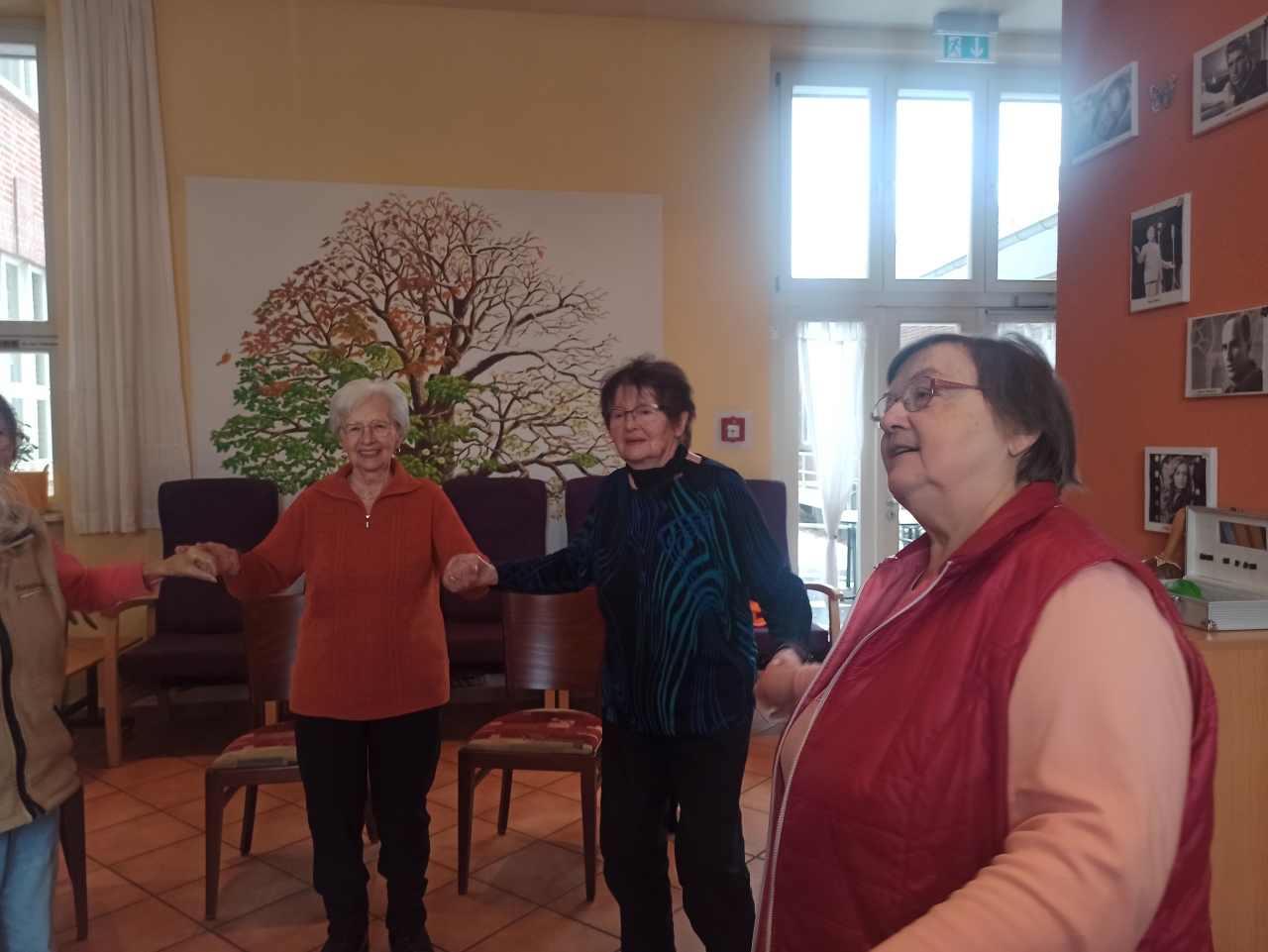 Ende Januar fand in unserer Tagespflege ein Tanzvormittag statt. Gemeinsam wurde das Tanzbein geschwungen und mitgesunden. Dabei wurden schon längst vergessene Erinnerungen wach, was so manchem Tanzenden ein großes Lächeln ins Gesicht zauberte.